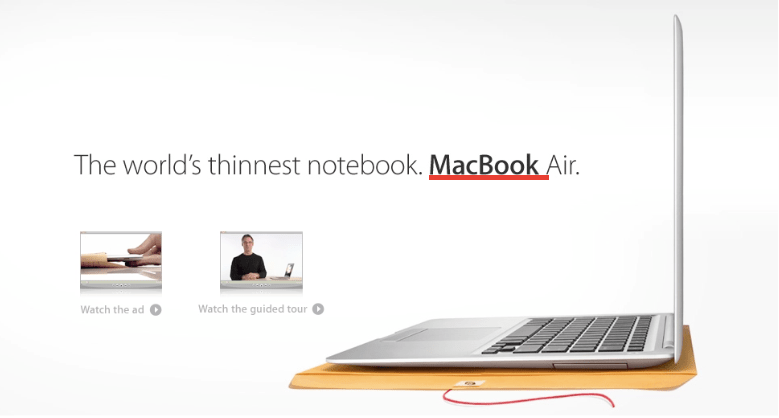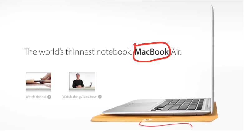 Typeface contrast is used well in the ad in order to direct your eyes to the word “MacBook”. The strokes of the word is thicker. It also looks super clean against the white background. When you look at the picture, that is the first thing that you are directed towards.